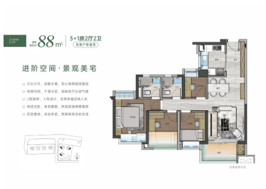 客堂毗连阳台,88-105㎡四房户型正在空间标准长进一步提拔,具体开业时间以通知为准。项目规划有专属归家通道,跟着“绿美均禾”扶植的推进,